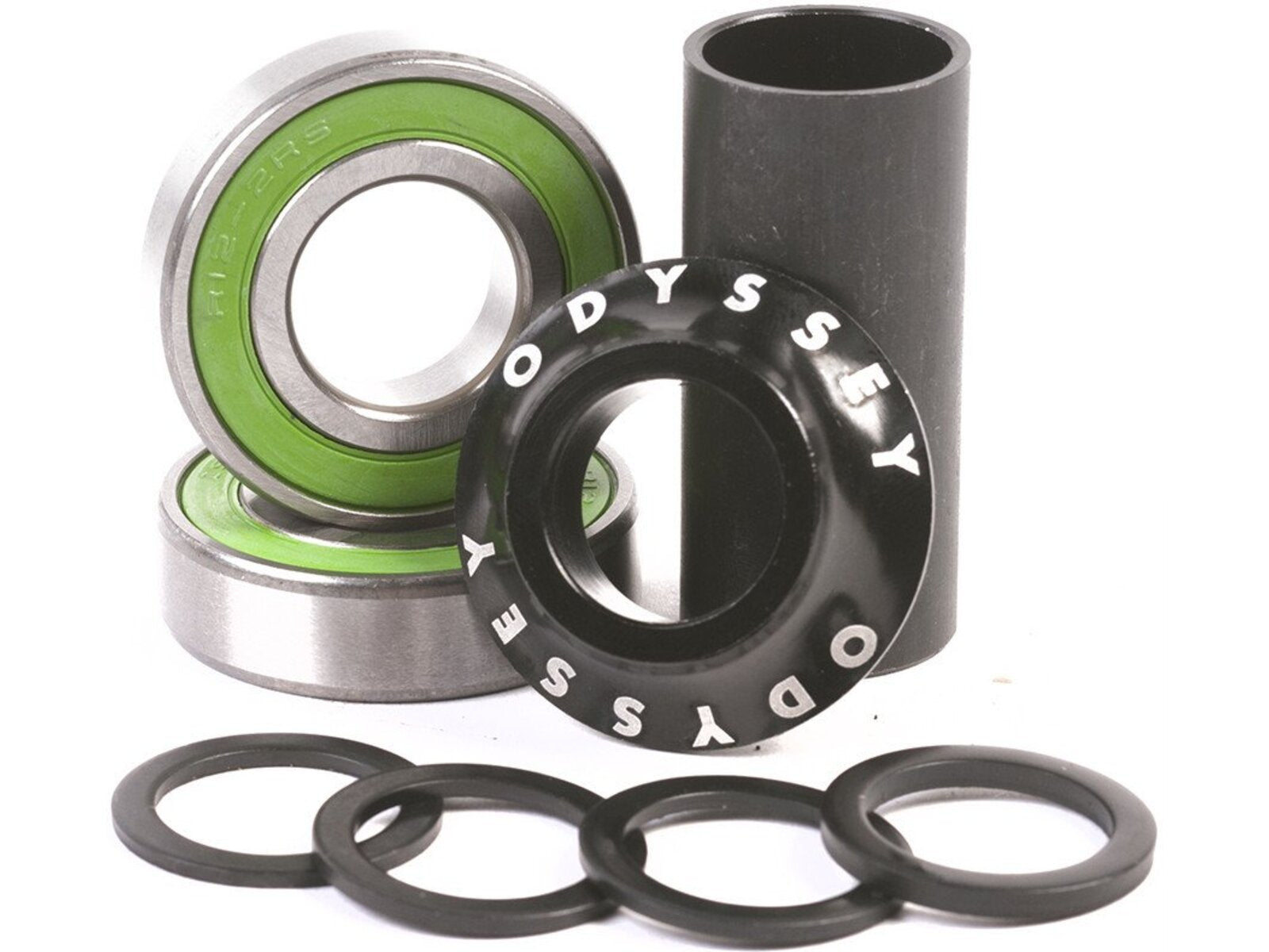 ODYSSEY 19MM MID BB Made to fit all 19mm crank spindles and press-fit Mid BB frames. Simple and easy to install. Includes an assortment of spacers to optimize chainline and crank clearance. Odyssey 6061-T6 aluminum dust spacer included.