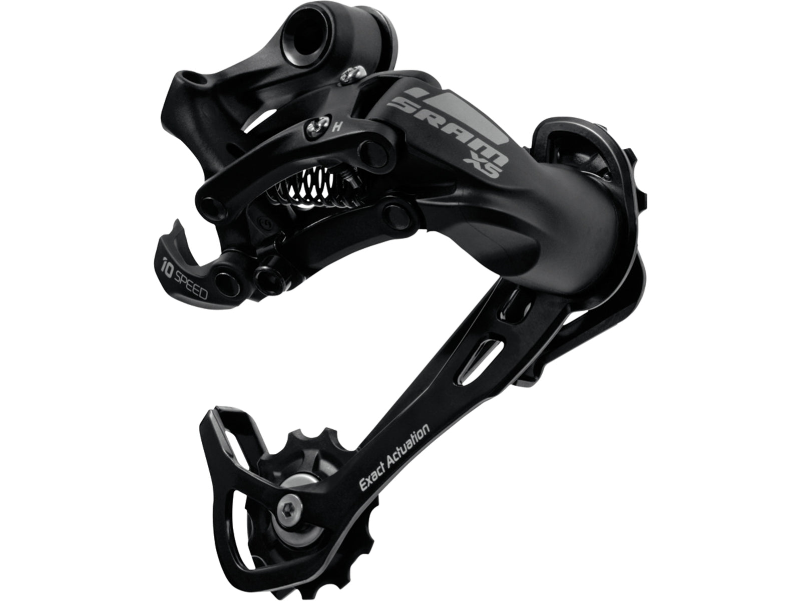 Leveraging the legendary history of SRAM shifting, the X5 rear derailleur provides incredible shifting speed and precision EXACT ACTUATION™ technology eliminates slop and shifting variation. - Speed (RD): 10s, 9s - Cable pull Ratio: 1:1, Exact actuation - Cage (RD): Long, Medium - Max tooth: 34, 36 - Color (RD): Black, Silver - Pulley bearings material: Steel - Cage material (RD): Aluminum