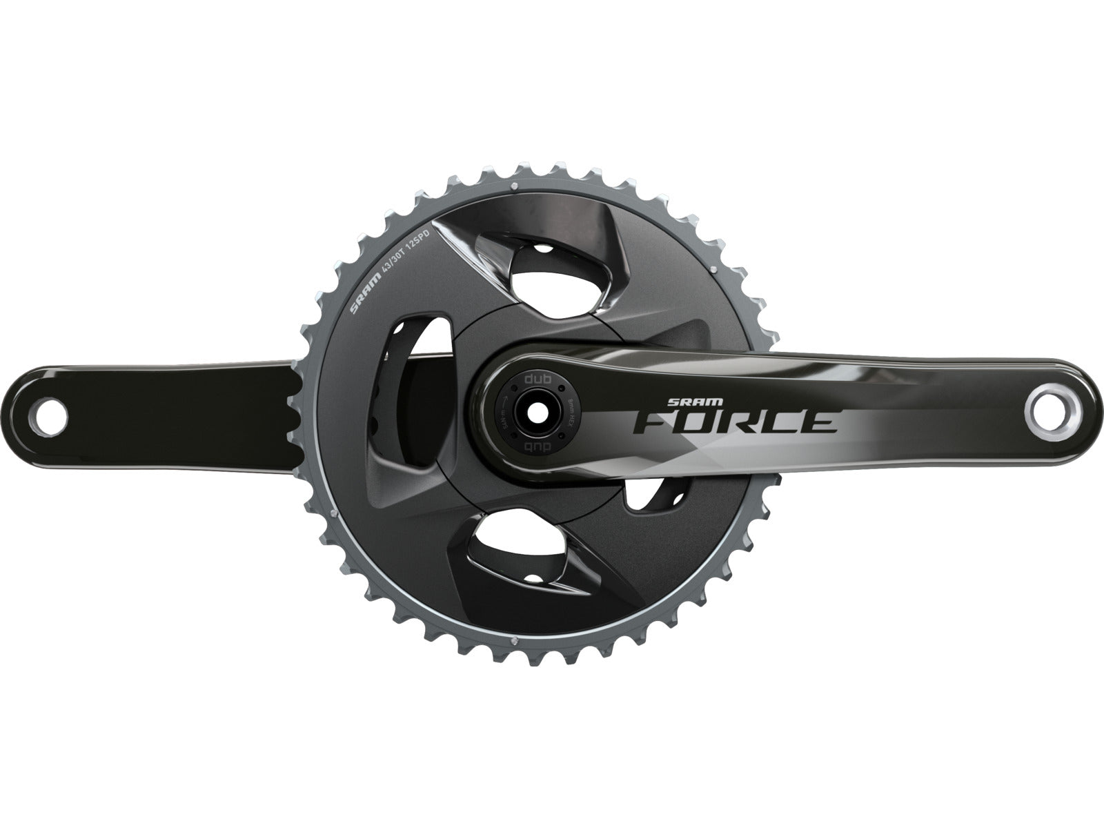 Explore the most challenging routes on the newest crop of versatile and fun drop bar bikes with the SRAM Force 43/30t wide crankset. Shifting is smooth, accurate, and dependable using our proven X-Range gearing based around a tight 13t difference between the small and big chainrings. The wider stance of the chainrings expands 2x drivetrain bike capabilities by providing clearance for fatter tires. - X-Range gearing technology gives you more range and a smoother gear progression, so you’re always in the right gear - Crisp and accurate front shifts - Wide chainline crankset for bikes with up to 700x45c or 27.5x2.1” tire widths (43/30 chainrings only) - Longer DUB crank spindle accommodates both Road and MTB width frame bottom bracket standards for unmatched cross-compatibility across brands - Requires Force wide front derailleur - DUB bottom bracket adds durability and simplicity