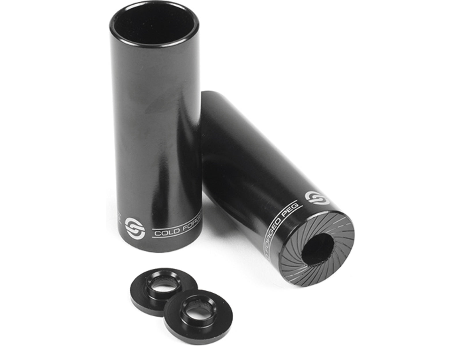 Material: forged steel Size: 14mm axle with an adapter for 3/8s" Length: 105mm / 4.15" Diameter: 36mm Colors: black, c.p, red, gold, oil slick, blue, green, purple Features: sold as pair Weight: 440g (0.93lb / 15.5oz) (per pair)